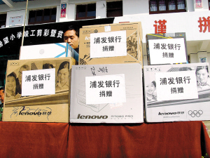 12月25日,浦發(fā)銀行深圳分行宗樂(lè)新行長(zhǎng)一行赴貴州省黔東南自治州黃平縣出席了“浦發(fā)銀行希望小學(xué)”落成典禮,并向該校捐贈(zèng)價(jià)值2萬(wàn)余元的電腦、打印機(jī)等教學(xué)設(shè)備,向該校100名貧困生發(fā)放學(xué)習(xí)用品及助學(xué)金。