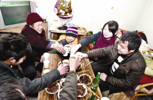 孩子們一陣忙碌,一盤盤咸淡不一、但香味四溢的團(tuán)年菜端出來,孩子們臉上的笑容滿是驕傲。