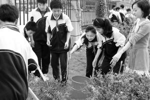 昨日,寶安區(qū)新湖中學的同學們親手種下一棵棵果樹,并把在校園里植樹的地方命名為“百果園”。小樹與同學們一同成長,為校園增添了一片新綠。 本報記者程海昆 通訊員 文建軍 攝
