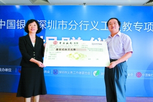 深圳市青少年發展基金會義工支教基金收到首筆120萬元捐贈資金。本報記者 吳永東