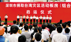 深圳市捐助臺灣災區活動板房(組合屋)啟運儀式現場。