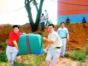赴江西安義的“募師支教”老師昨日順利抵達(dá),受到當(dāng)?shù)氐臒崃覛g迎。圖為當(dāng)?shù)貙W(xué)校領(lǐng)導(dǎo)和老師幫助志愿者抬行李。特派通訊員 周 堃攝