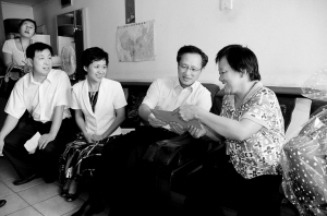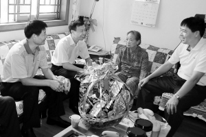 李軒輝是下沙本地人,也是家里的獨苗,現(xiàn)在正在北京參加新中國成立60周年閱兵演練。昨日一早,福田區(qū)委書記李平便來到李軒輝家,為他的家人帶去節(jié)日的問候。隨后李平一行又看望了低保戶李會美,送去慰問品。李會美早年喪偶,自己又有嚴重的哮喘病,加上兩個孩子都在上學,生活壓力非常大。